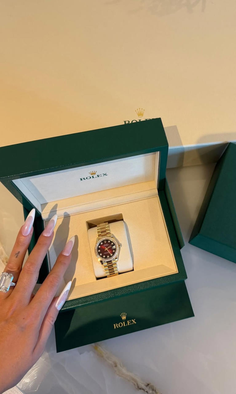 Sí, publicó una imagen de un reloj lujoso, posiblemente parte de sus obsequios.